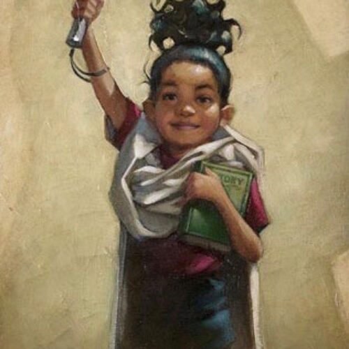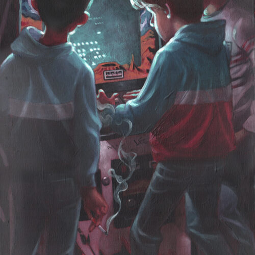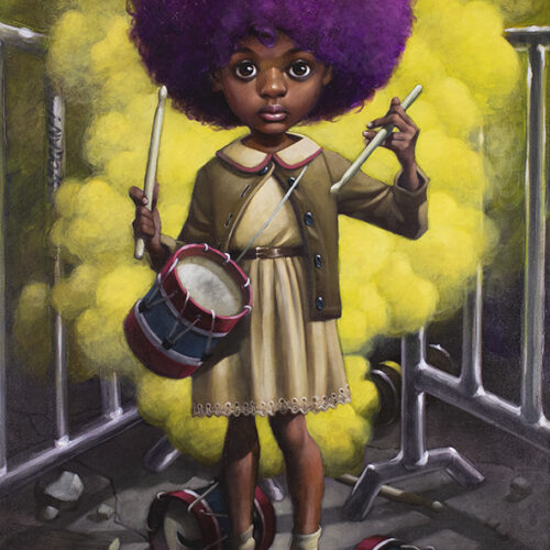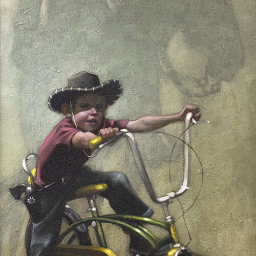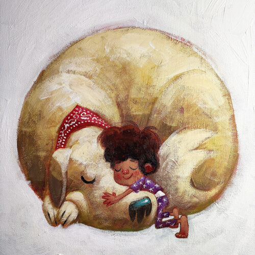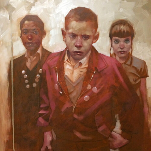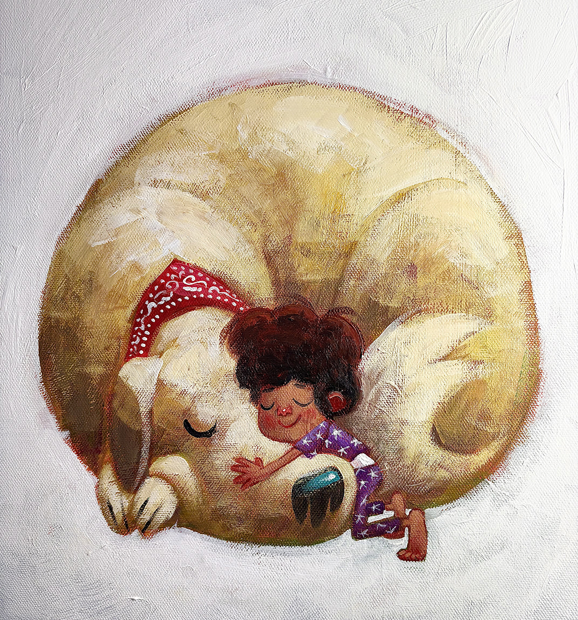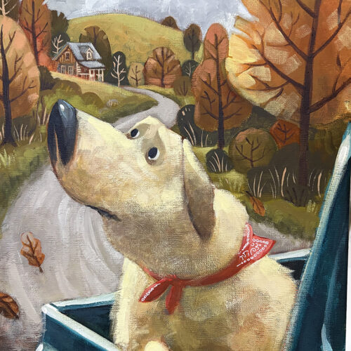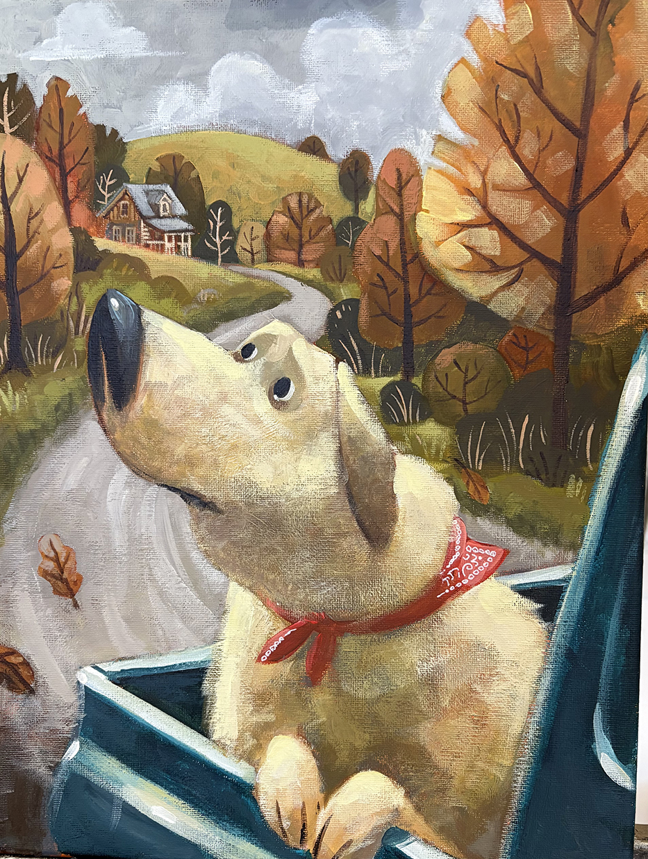 “My head is always filled with new ideas all scrambling to get onto canvas first. Once they’re there I like my paintings to have a slightly naïve, grubby look with lots of energy – which, when I think about it, sums up my childhood.”
