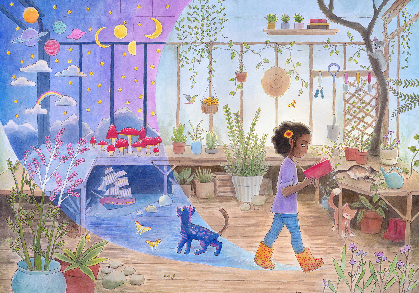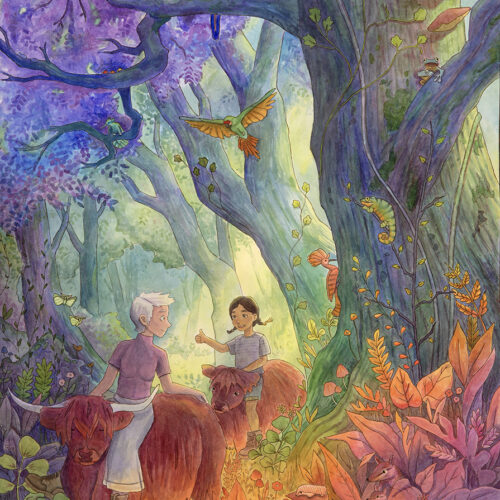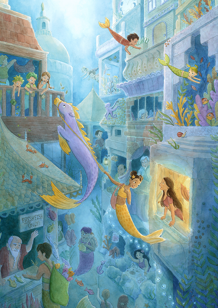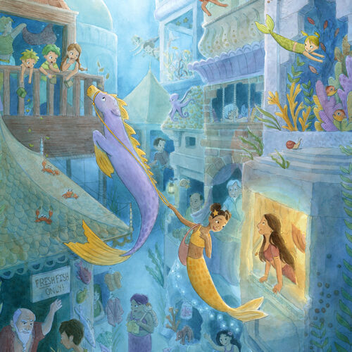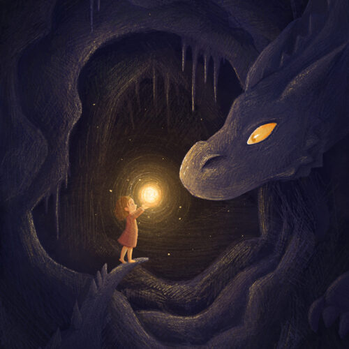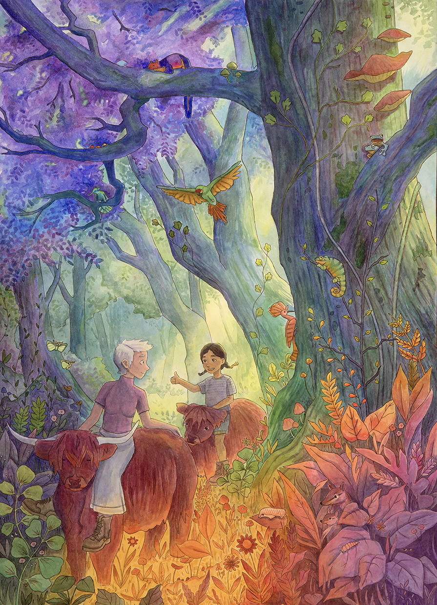Now based in Brooklyn, Elena still stares at animals all day, only now they’re her illustrations of winged kittens, mischievous dragons, or loyal hippocampi. She loves dreaming up fantastical settings and uses color, light, and shadow to create depth and mystery, tucking in hidden details so there’s always more to see. She blends the organic texture of watercolor with digital techniques and is always exploring new mediums and textures she can bring into her work. When she’s not hunched over her desk, Elena can be found exploring the city, rock climbing, or waiting in rush lines to snag discounted Broadway tickets.
