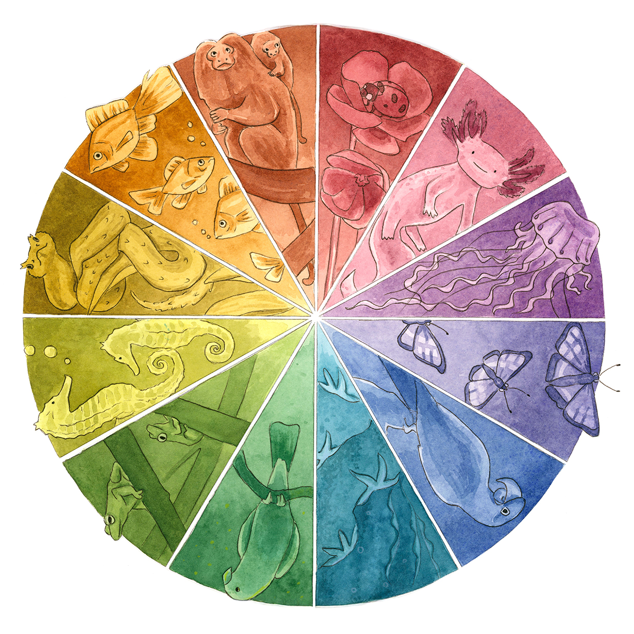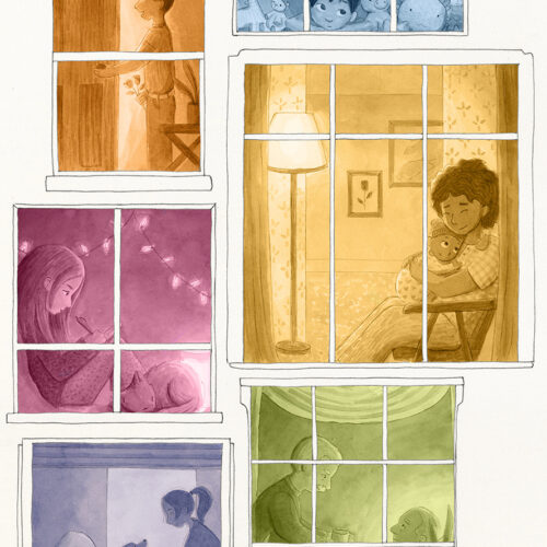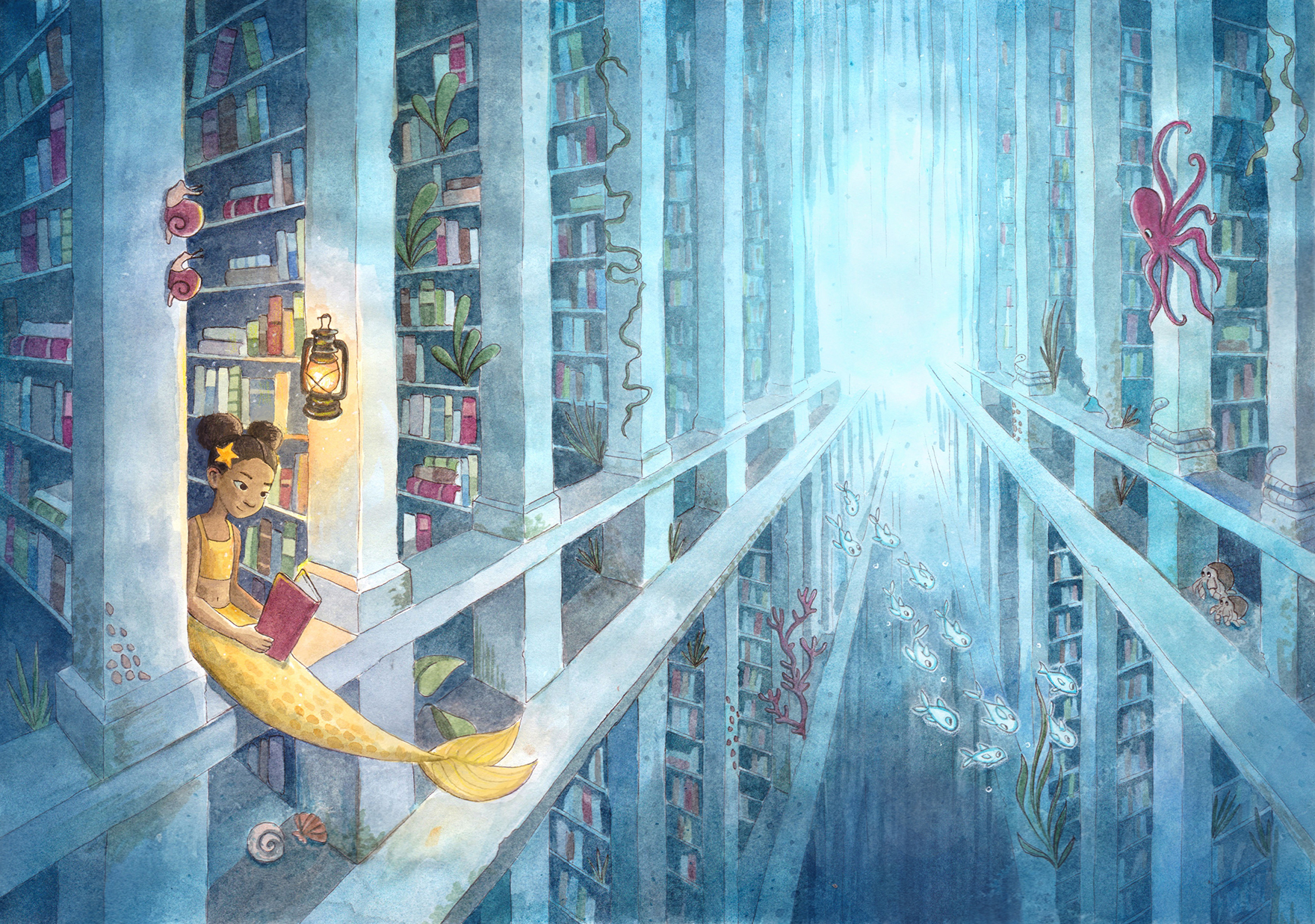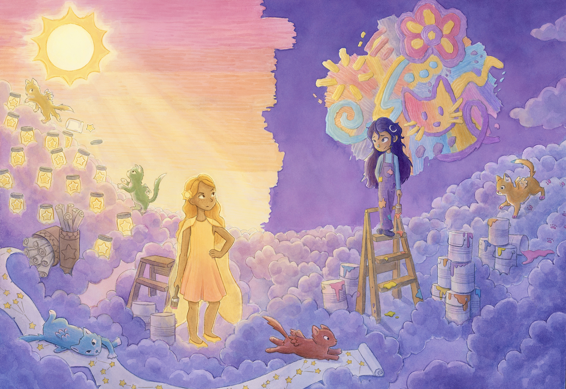Now based in Brooklyn, Elena still stares at animals all day, only now they’re her illustrations of winged kittens, mischievous dragons, or loyal hippocampi. She loves dreaming up fantastical settings and uses color, light, and shadow to create depth and mystery, tucking in hidden details so there’s always more to see. She blends the organic texture of watercolor with digital techniques and is always exploring new mediums and textures she can bring into her work. When she’s not hunched over her desk, Elena can be found exploring the city, rock climbing, or waiting in rush lines to snag discounted Broadway tickets.
